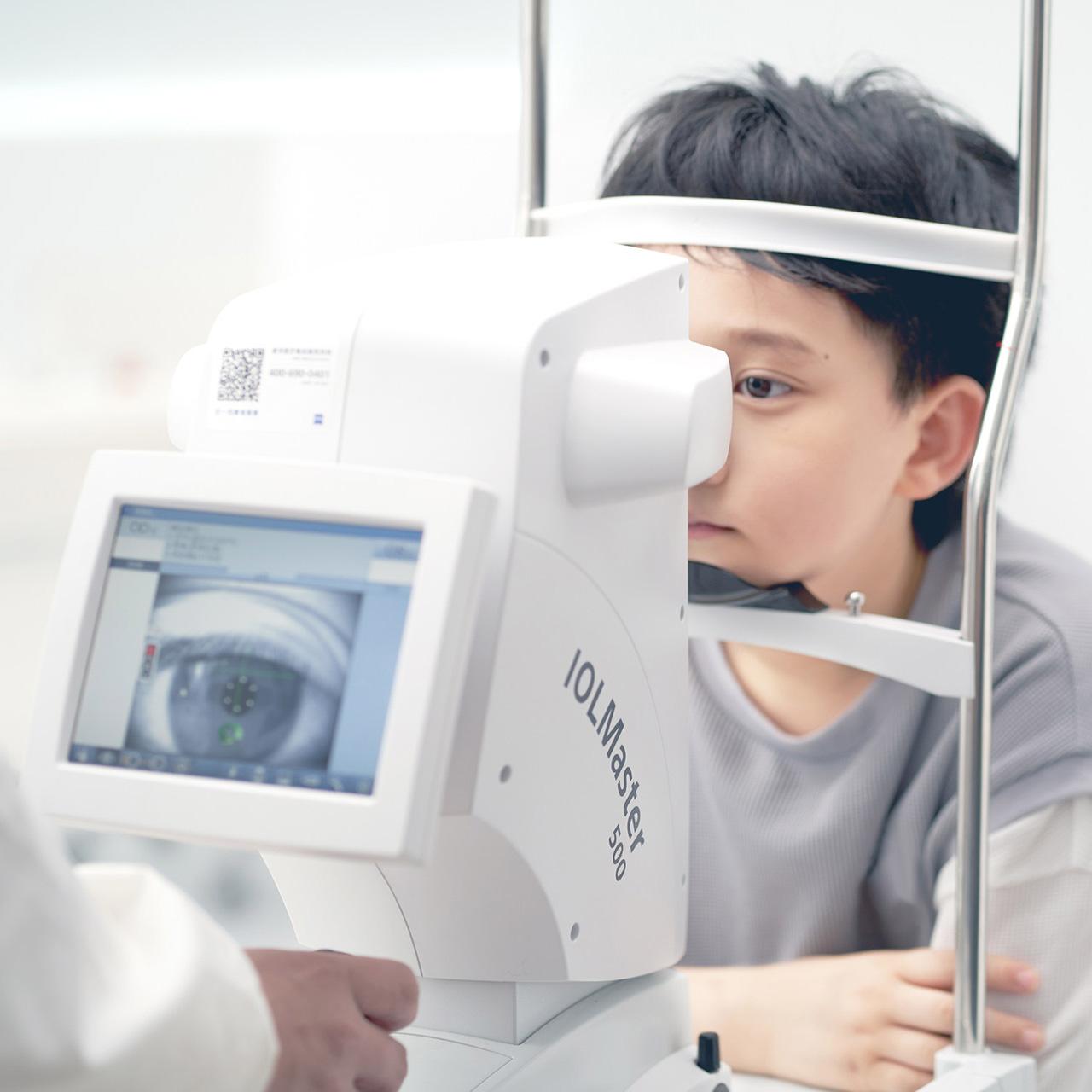 • Boy having an eye examination with ZEISS IOLMaster 500