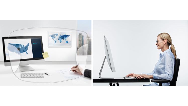 The tailored design provides spectacle wearers with a sharp and clear visual experience at short and medium distances, adapted to their individual needs: 1. When reading, 2. At work, and 3. For general activities.